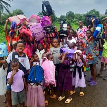 Volunteers were each gifted a 60-lb bag of rice and some oil